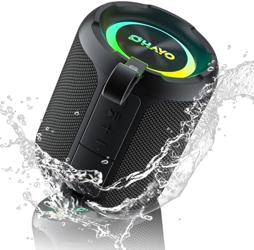 The speaker has an IPX7 waterproof rating. For waterproofing, ensure the rubber flap is tightly sealed. The Ohayo speaker is waterproof and can be submerged underwater for up to 30 minutes.