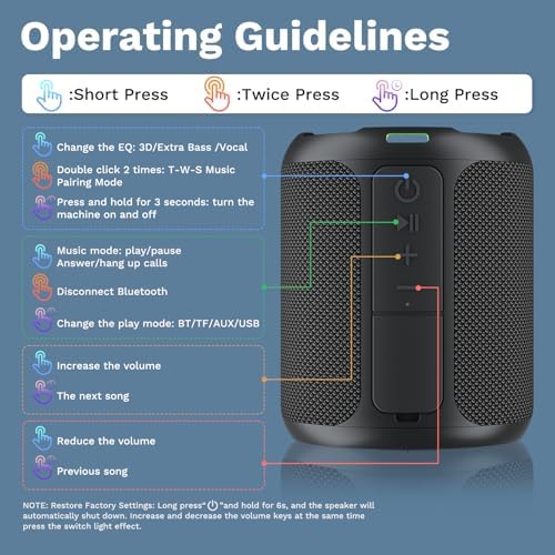 1 Quickly double-click the”Power”button of oneof the speakers as the host to perform TWSpairing. After hearing the connectionsuccess prompt tone, the two speakersenter TWS mode.