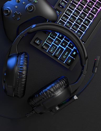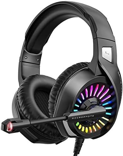 Gaming Headset with Microphone, Compatible with PS4 PS5 Xbox One PC Laptop, Over-Ear Headphones with LED RGB Light, Noise Canceling Mic, 7.1 Stereo Surround Sound Video Games